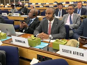 South Africa(RSI TV)-Wasiirka Wasaaradda Dekedaha iyo Gaadiidka Badda ee Xukuumadda Federaalka Soomaaliya, Mudane Abdulkadir Mohamed Nur, ayaa maanta ka qayb galay furitaanka Kalfadhiga 34-aad ee Golaha Ururka Caalamiga ah ee Badaha (IMO), oo si rasmi ah uga furmay magaalada London, isagoo hoggaaminaya wafdi matalaya Jamhuuriyadda Federaalka Soomaaliya.
